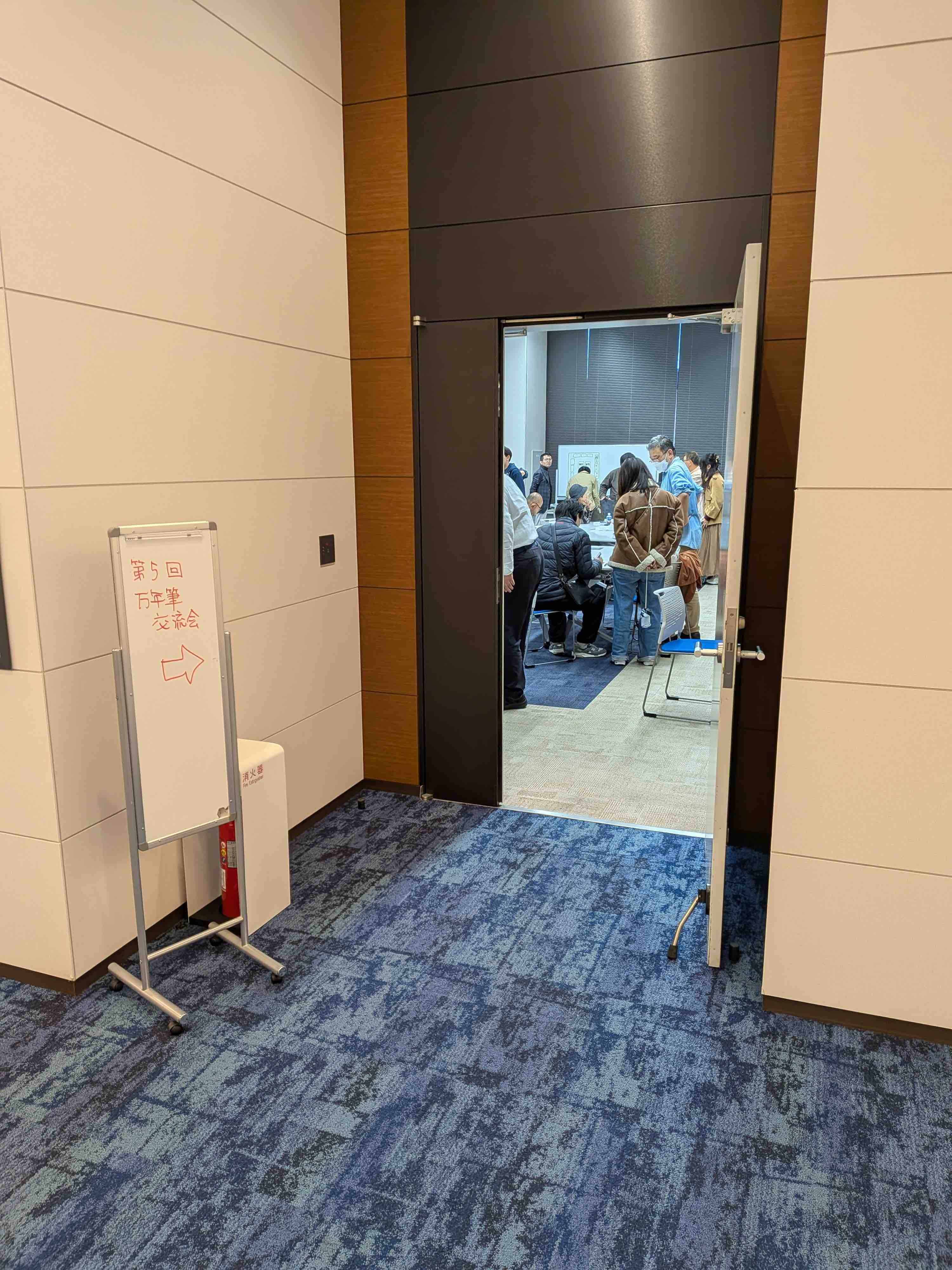 まずは,外観から.左は正面入口,真ん中は3階イベントホール,右はイベントホール前の踊り場です.真ん中の写真は顔を撮ると拙いという配慮から壇上方のみを撮影しています.