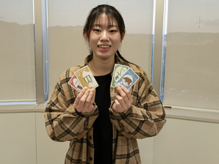 実際に現地に行き、棚田の知識も深めることができ良い経験になりました。カードデザインについては、本物にできるだけ近づけつつわかりやすくデザインすることを心掛けました。 (西川)