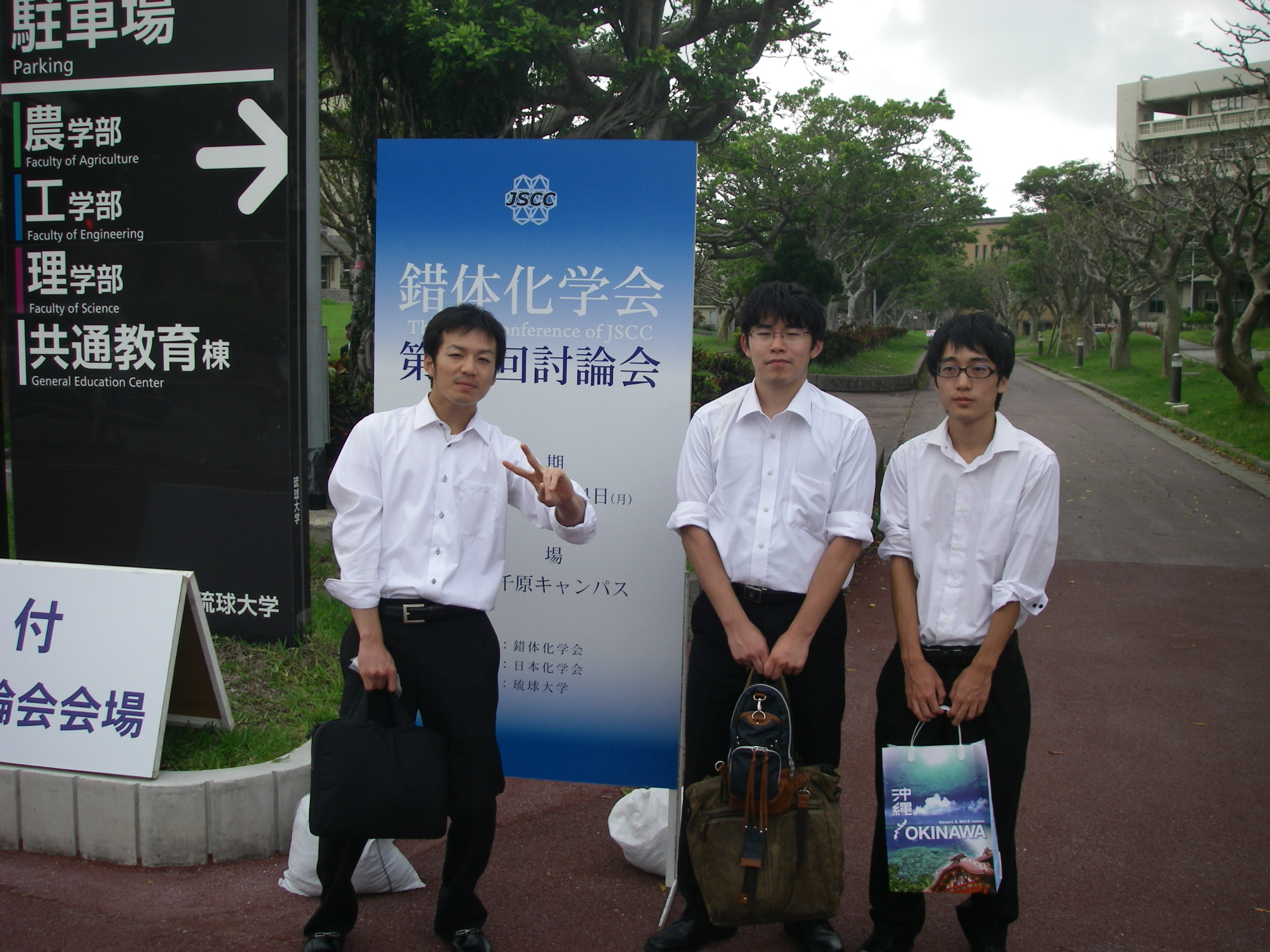 | 今年の錯討は、琉球大学で行なわれました。 台風を避けて11月開催に なったのですが、結局開催前日に台風が近くを通ったという・・・ 天気もまずまず、でも暑かったですね。 一旦涼しさに慣れた体には結構こたえました。 発表は、2件とちょっと寂しいものでした。 |